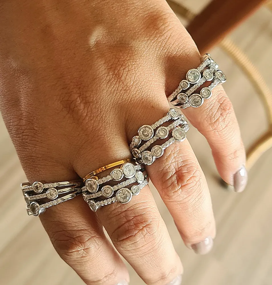 Anel confeccionado em semijoia importada, inspirado na coleção de Chaumet, com zirconias cravejadas e sobrepostas também, como imagens nas fotos.