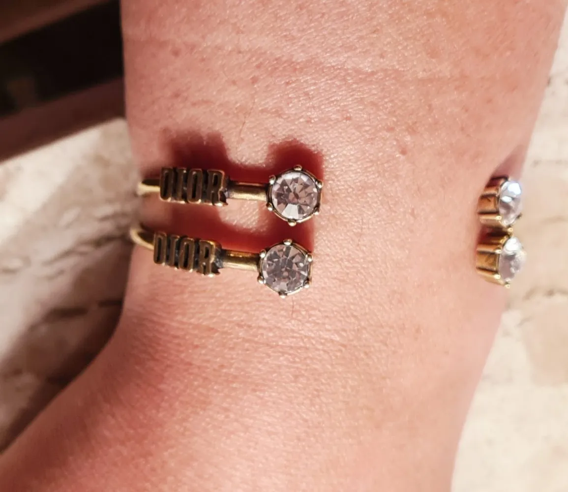 bracelete aberto ajustável com brilhantinhos em zirconias na ponta do bracelete.