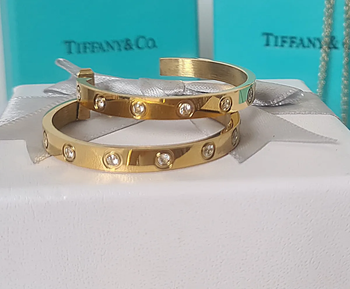 Brinco confeccionado em semijoia, com cristais, inspirado na coleção love da Cartier.