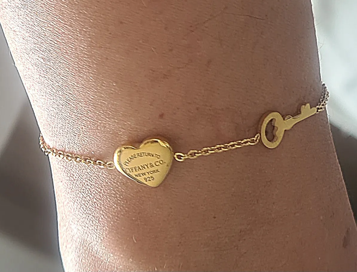 Pulseira coração e chaves correntinha fina Tiffany