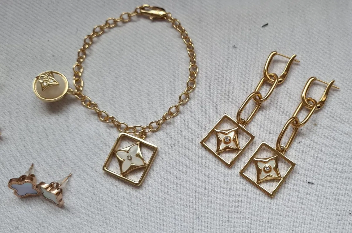 são semijoias importadas, confeccionadas em titânio, tem 10 banhos de ouro 18k, e ouro branco as prateadas, antialérgicas e garantia de um ano no banho dos metais, Embora nossas peças demorem muito mais para desbotar, e manchar do que outras joias, ainda aconselhamos nossos